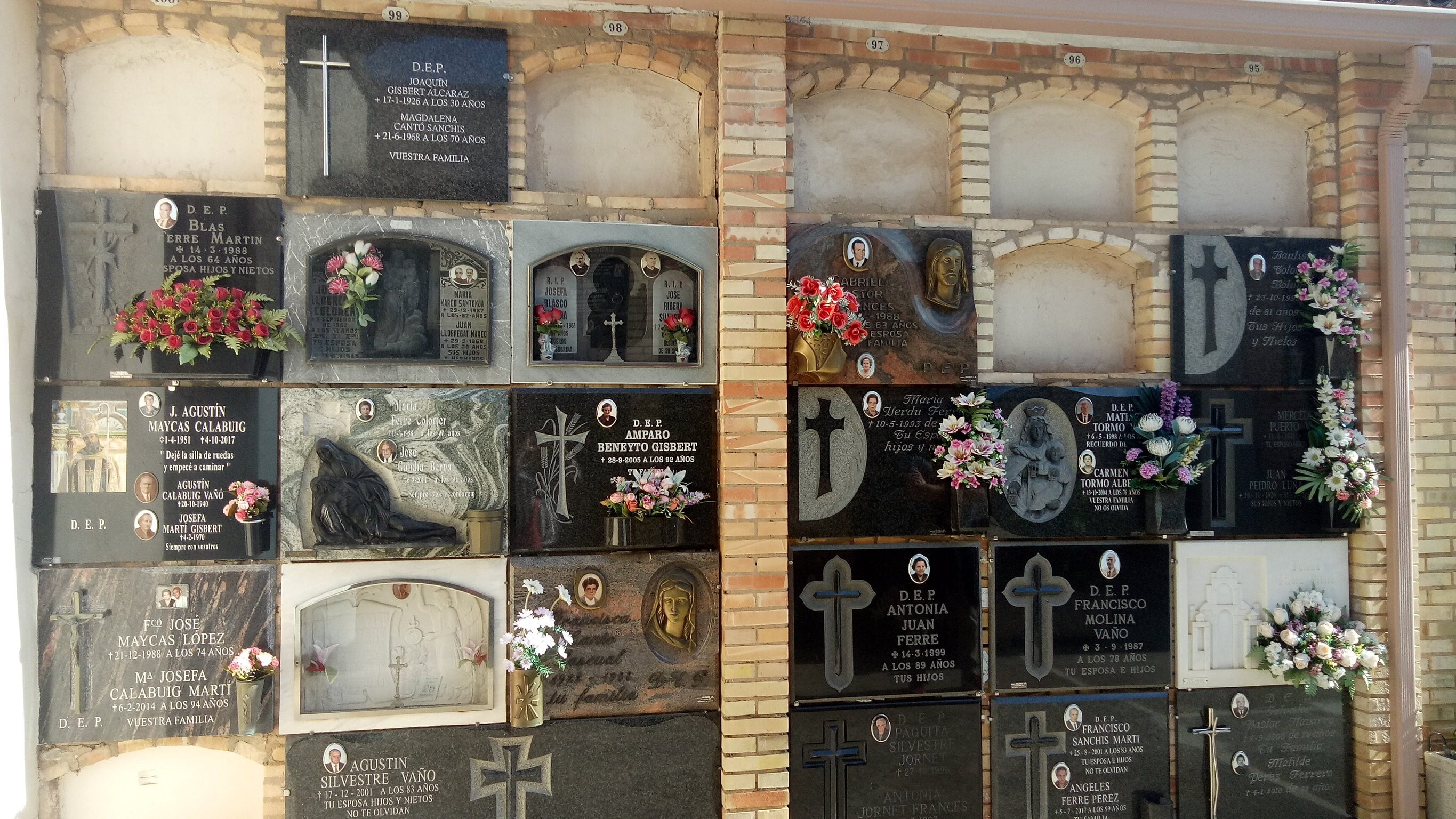 There were dozens of families cleaning the plaques of their dead loved ones polishing them till they gleamed and it was almost like a competition as to whose family cared the most.