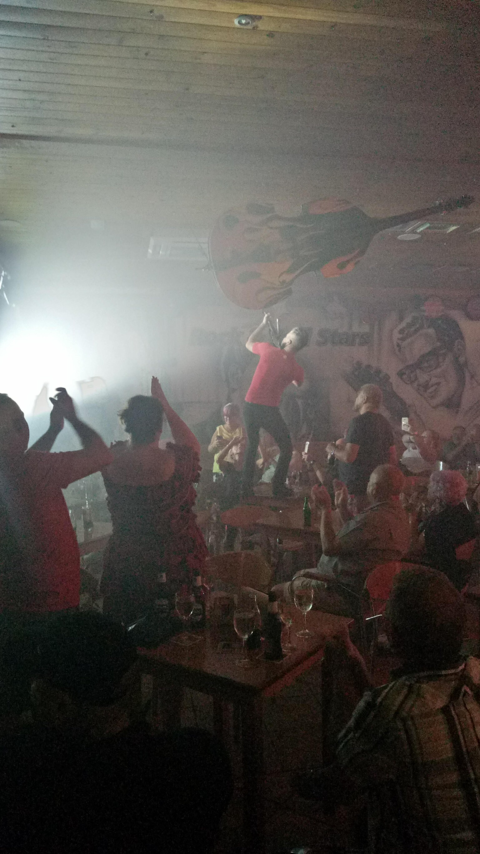 After enjoying a fantastic show we three couples walked to the Rock n roll bar down the street where we watched the last of a Blues brothers set, then an incredible Argentinian guy who had the crowd in his palm from the first minute. At one point he was on the table tops playing his fiddle and entertaining everyone with his endless talent. Next at about 1:15 we had a change again, another guy who looked like Bryan Ferry and who did sing a Roxy music song but was mostly doing 50s Rock n roll.