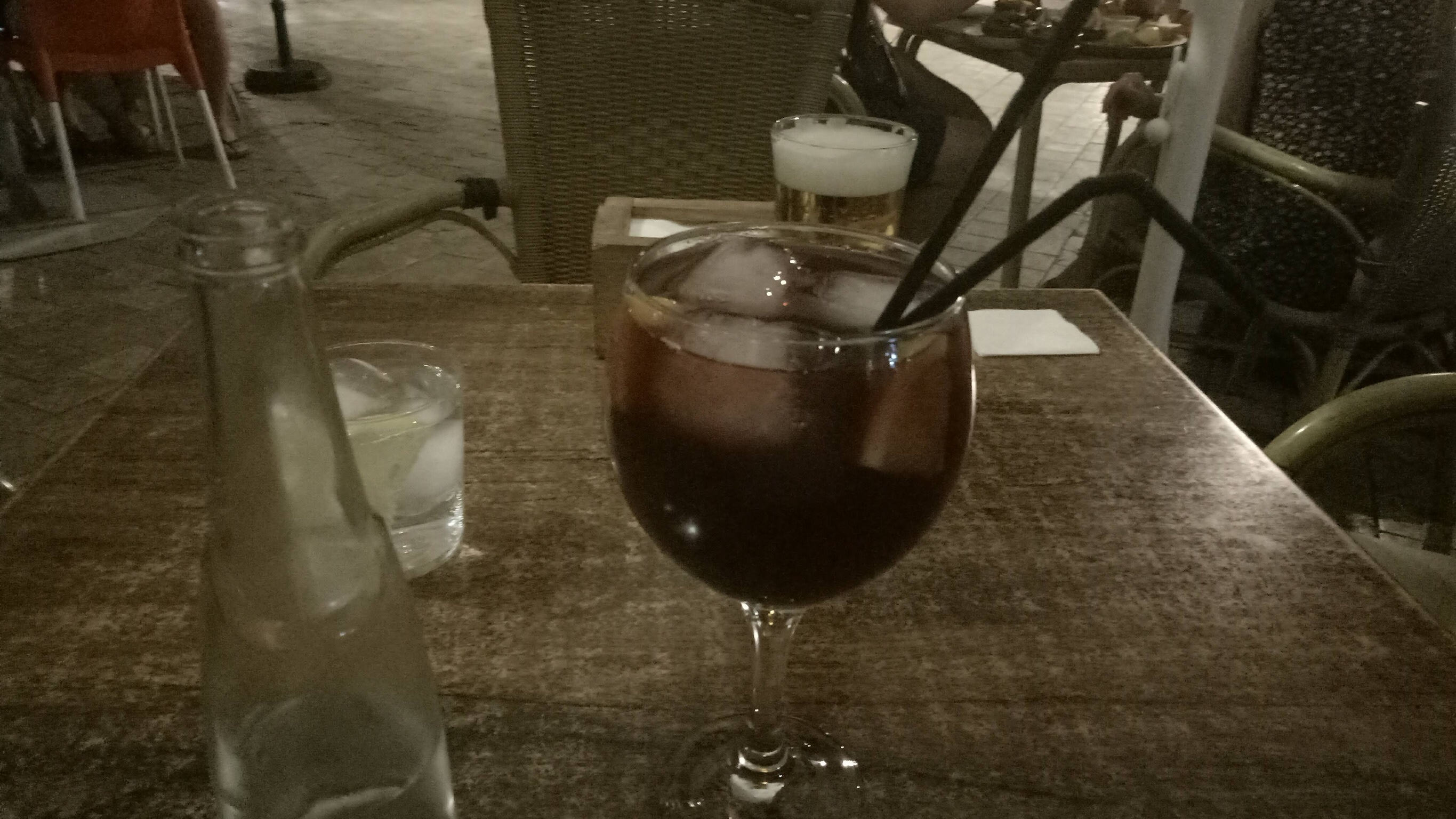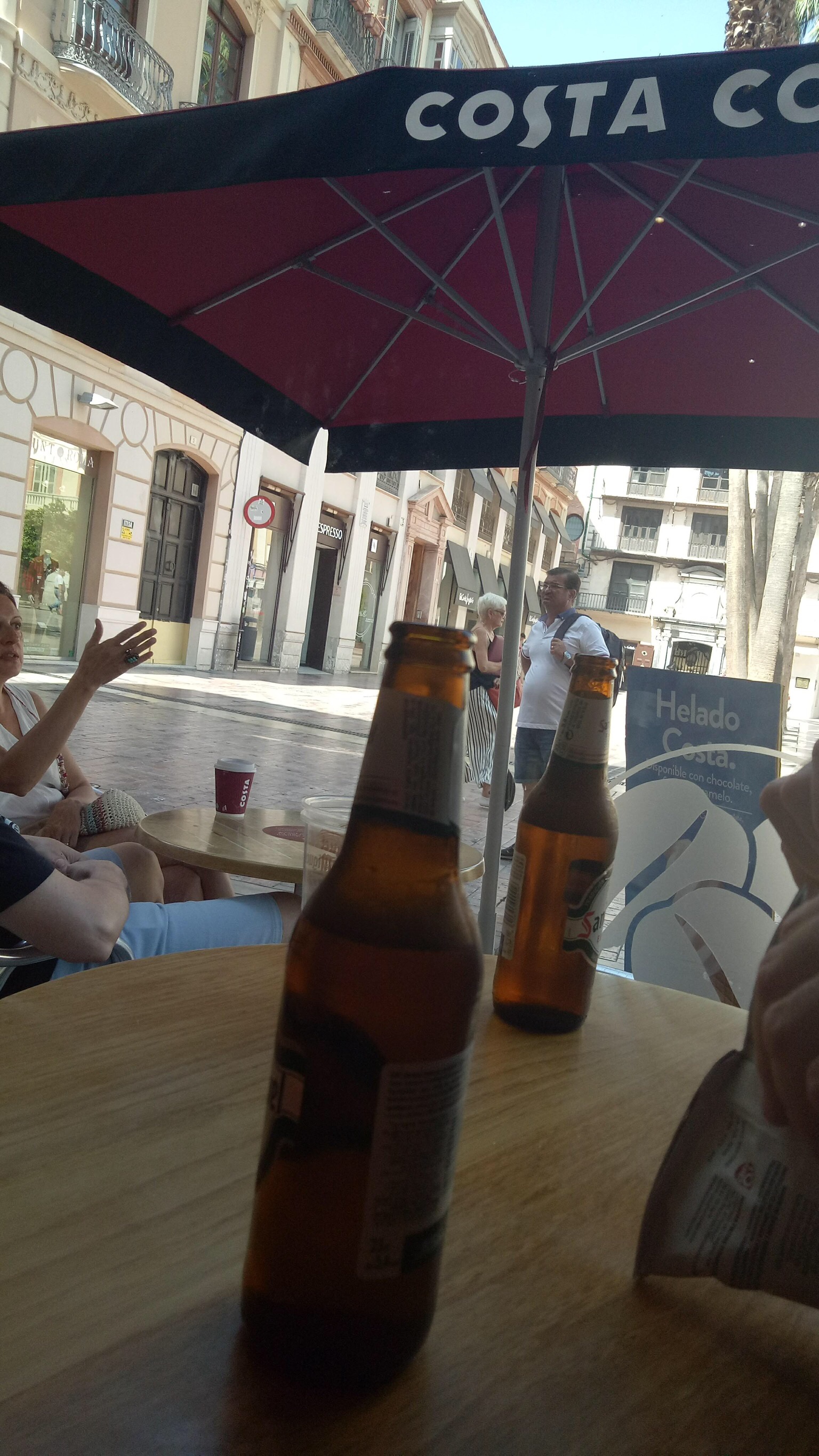 I had two glasses of cava , James two beers, a large bottle of mineral water, and a coffee each, presented with complimentary chocolate brownies all for 44€.