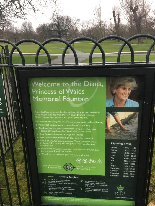 Second of January and we headed to Notting Hill Gate and walked Portobello road and then walked over to Kensington gardens. Took a look at The Princess Diana memorial fountain which to be honest was quite underwhelming and resembles a giant street curb.