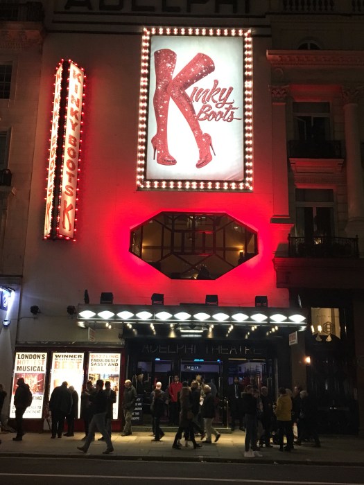 we had a lovely evening and went to bed full of good food and slept in a little the next day, before getting ready to go into the city to catch the matinee of Kinky Boots the stage show which we had booked for knowing that we were going to go on to Notting Hill again to the Churchill arms pub to catch up with a work colleague of James, whom had also left just before James did to travel. He and his wife have been lucky enough to be able to get English passports so can work in the U K no problem. The pub had a great Thai restaurant attached so by the time we got back to our accommodation we had had a brilliant day out. The show was fantastic and such good prices to catch shows in London you would go regularly if you lived here.